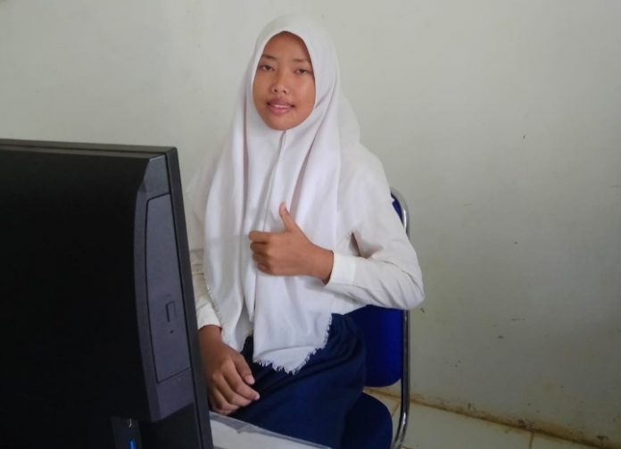 Nasya Laitasari, salah satu siswi MTs Al-Arofah Bunguran Batubi, yang berhasil meraih juara 1 KSM 2024 tingkat Kabupaten Natuna, pada mata pelajaran matematika.