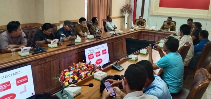Suasana sosialisasi penerapan sistem E-Katalog yang di lakukan Diskominfo Natuna terhadap awak media, yang berlangsung di ruang rapat lantai II Kantor Bupati Natuna, Jalan Batu Sisir, Bukit Arai, pada Selasa (28/02/2023) pagi. (foto : Khairud)