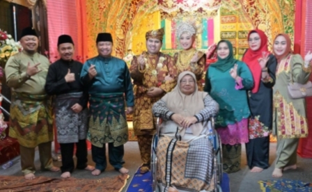 Bengkalis, SinarPerbatasan.com – Keluarga besar Bupati Bengkalis Kasmarni, melangsungkan prosesi ‘ngunduh mantu’ resepsi pernikahan putranya M Arsya Fadillah bersama pasangannya Tiara Sumarna, di kediaman Bupati, di Desa Muara Basung, Kecamatan Pinggir.