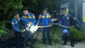 Ular dengan warna kulit yang mengkilap itu, akhirnya berhasil di amankan petugas sekitar pukul 19:30 WIB.