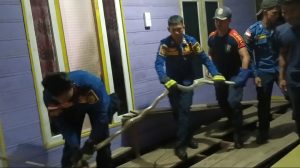 Pasalnya, petugas Damkar kesulitan untuk menangkap ular tersebut, lantaran sang reptil bersembunyi di kolong teras rumah warga yang terbuat dari kayu. Sehingga petugas harus membongkar lantai papan terlebih dahulu, agar dapat menangkap ular dengan sejumlah alat khusus.