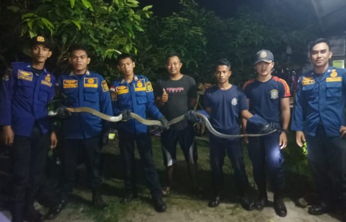 Teror Ular Kobra Hantui Warga Bandarsyah, Damkar Natuna Sigap Beri Pertolongan