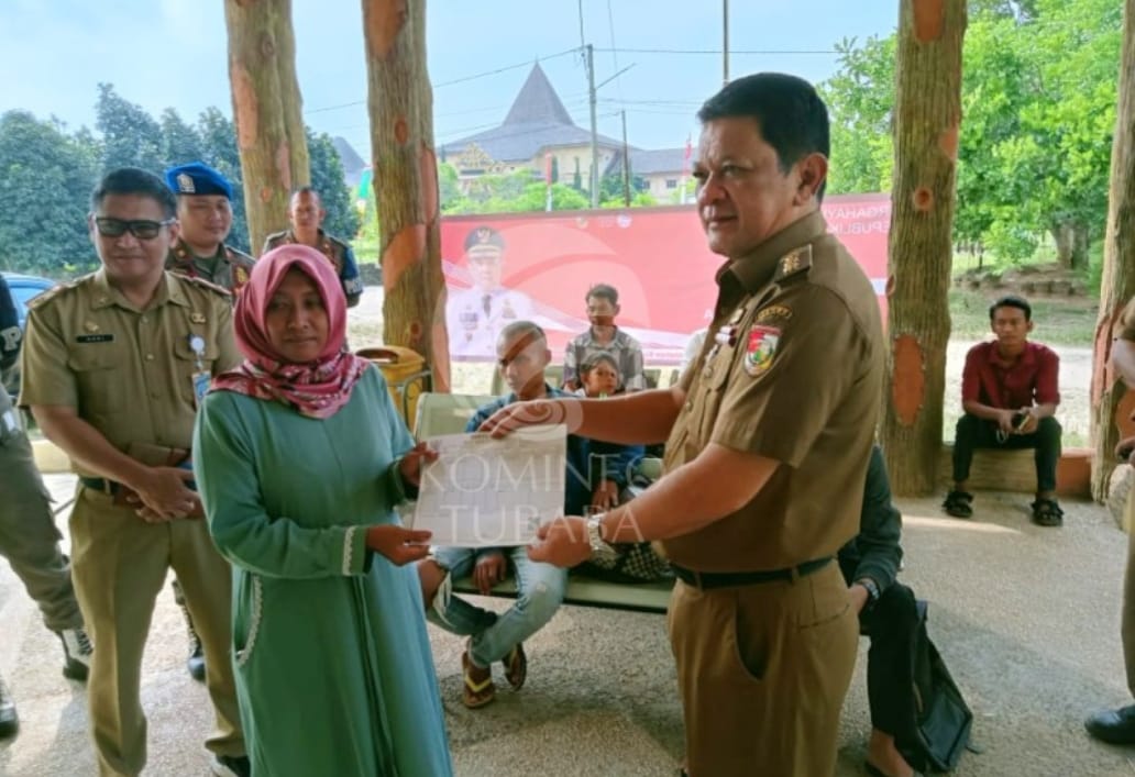 Tubaba, SinarPerbatasan.com – Penjabat (Pj) Bupati Tulangbawang Barat (Tubaba), Drs. M Firsada, M.Si., turut melayani dengan menyerahkan Kartu Keluarga (KK) kepada seorang warganya saat meninjau langsung pelayanan kependudukan di Kantor Dinas Kependudukan dan Pencatatan Sipil (Disdukcapil) Kabupaten setempat, pada Selasa (08/08/2023).