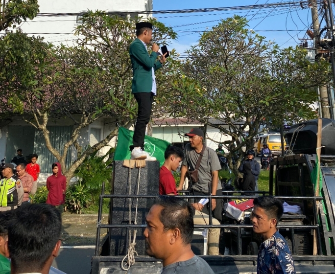 PC HIMMAH Kota Medan saat menggelar aksi Unjuk Rasa di depan Mapolda Sumatera Utara, Jum’at (02/02/2024) siang.
