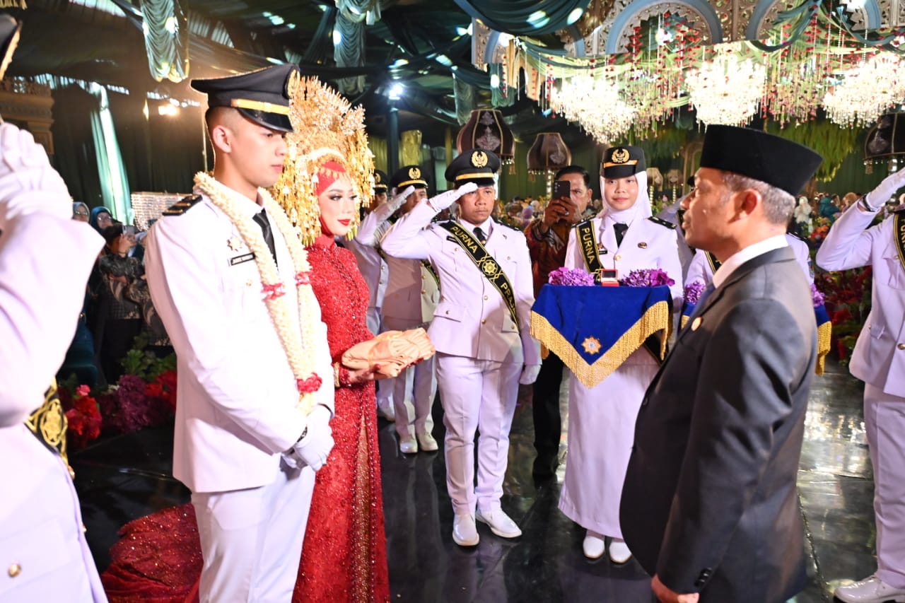 “Semoga kedua mempelai mampu menjalani rumah tangga dengan penuh kesabaran, saling menghargai, serta senantiasa mendapat ridho Allah SWT. Semoga kedua mempelai selalu meneladani nilai-nilai Dharma Astabrata sebagai pedoman dalam kehidupan sehari-hari,” pesan Wabup.