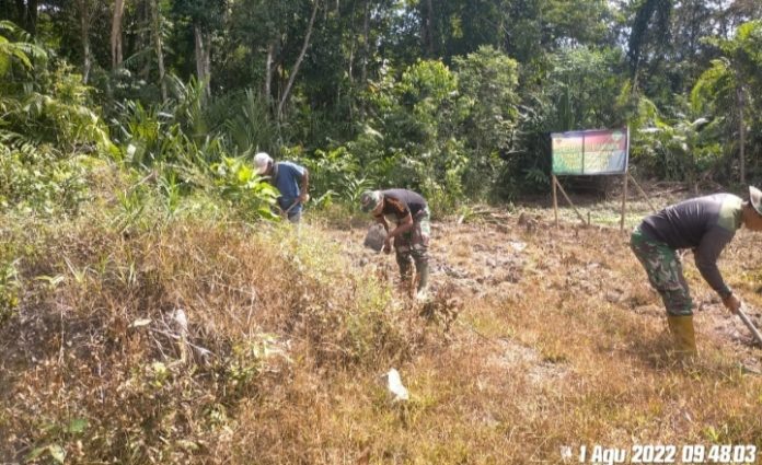 Anambas, SinarPerbatasan.com – Anggota Koramil 02/Tarempa Kodim 0318/Natuna melaksanakan kegiatan inovatif penanaman bibit jagung sebanyak 1 kantong untuk lahan seluas 60×70 meter (4.200 M2) di Desa Tarempa Selatan, Kecamatan Siantan, Kabupaten Kepulauan Anambas (KKA), pada Senin (01/08/2022) pagi.
